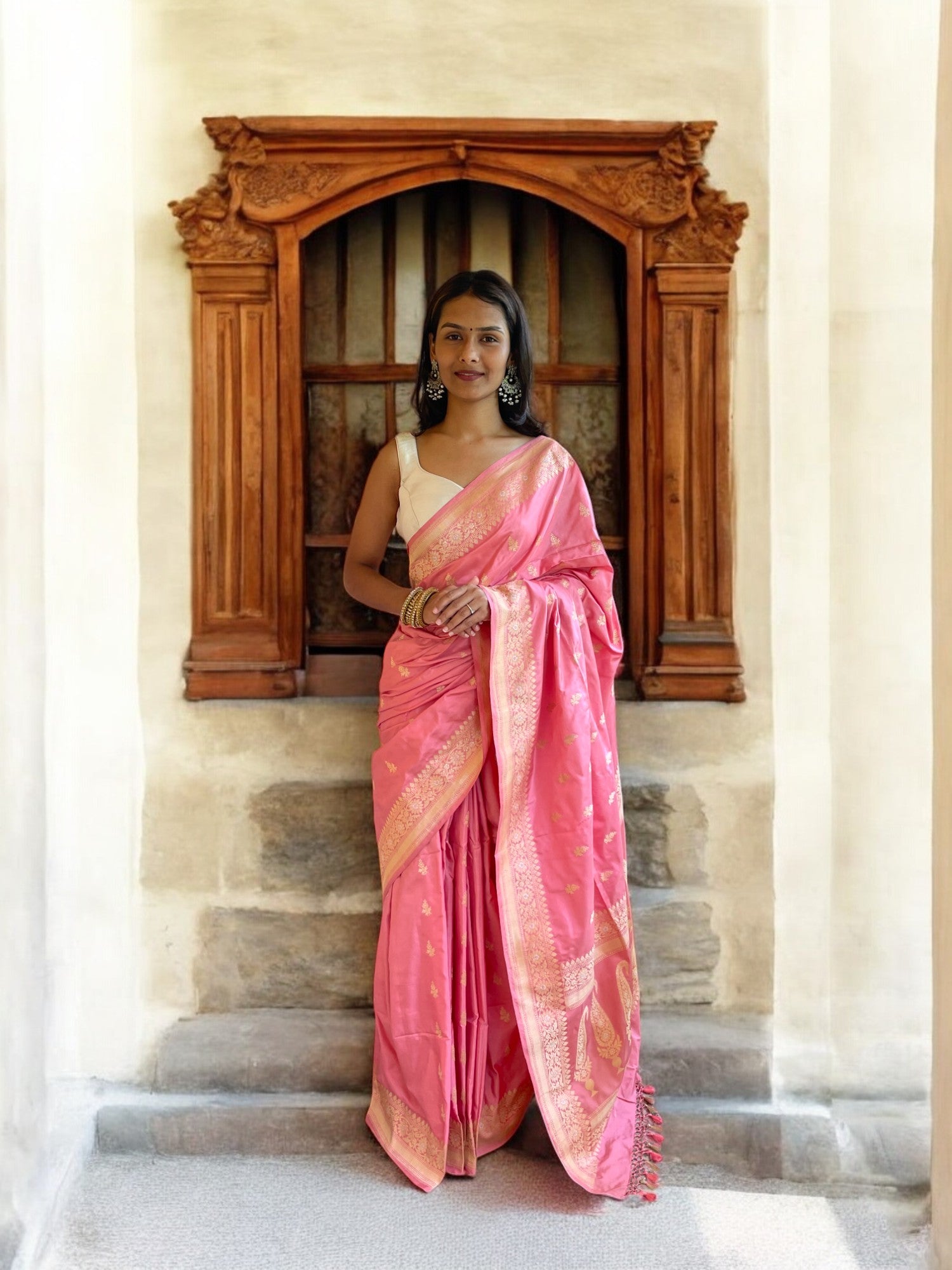 At Girhasta, each saree is a tapestry of tradition and soul. Our Banarasi artisans—the “weavers of light”—pour generations of expertise into every thread. We honour their heritage with ethically crafted heirloom weaves, preserving India’s rich handloom culture. This is more than attire—it’s an experience in legacy, love, and light.