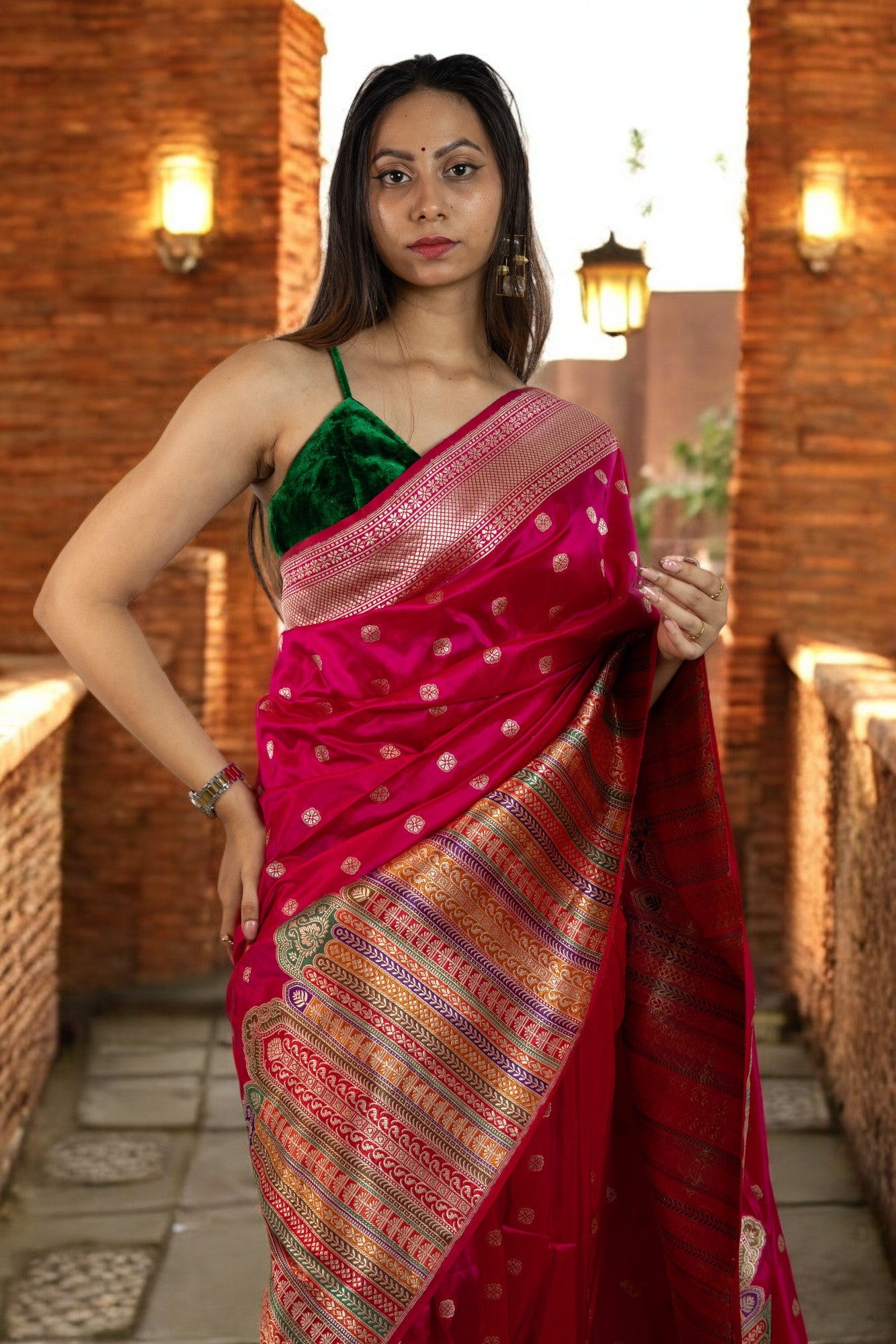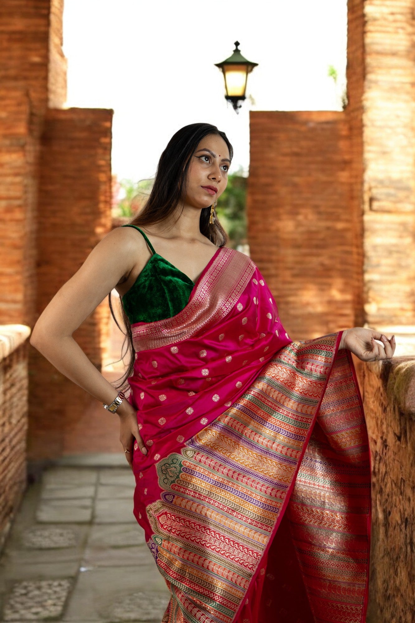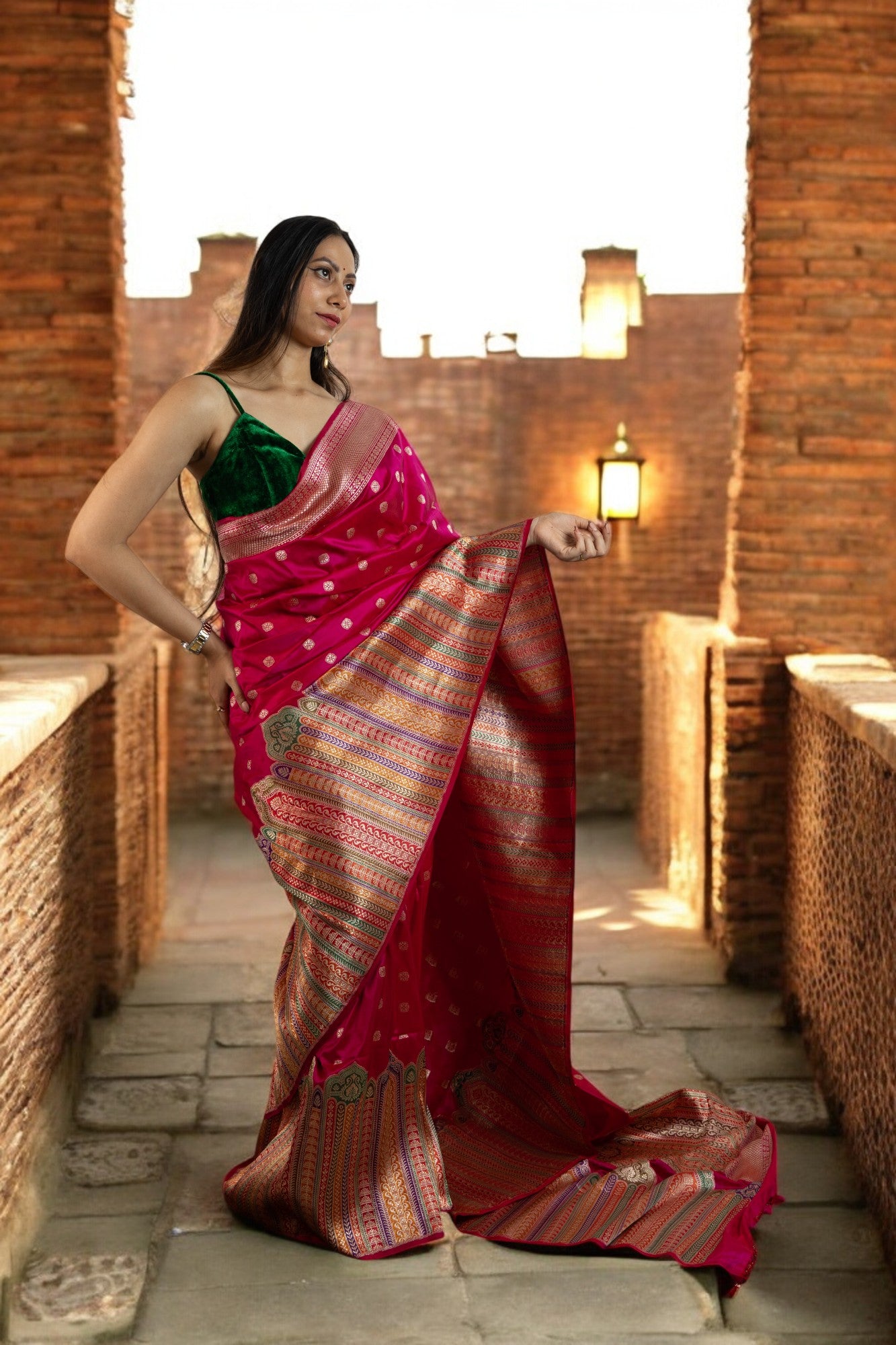 At Girhasta, each saree is a tapestry of tradition and soul. Our Banarasi artisans—the “weavers of light”—pour generations of expertise into every thread. We honour their heritage with ethically crafted heirloom weaves, preserving India’s rich handloom culture. This is more than attire—it’s an experience in legacy, love, and light.