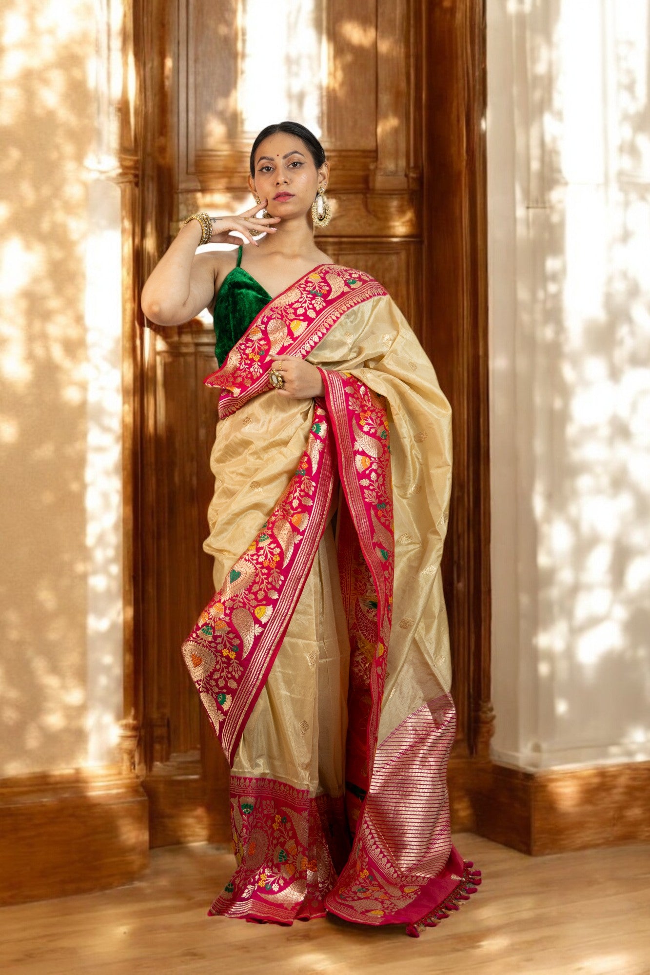 Golden gleam with Fuchsia Panch Meena